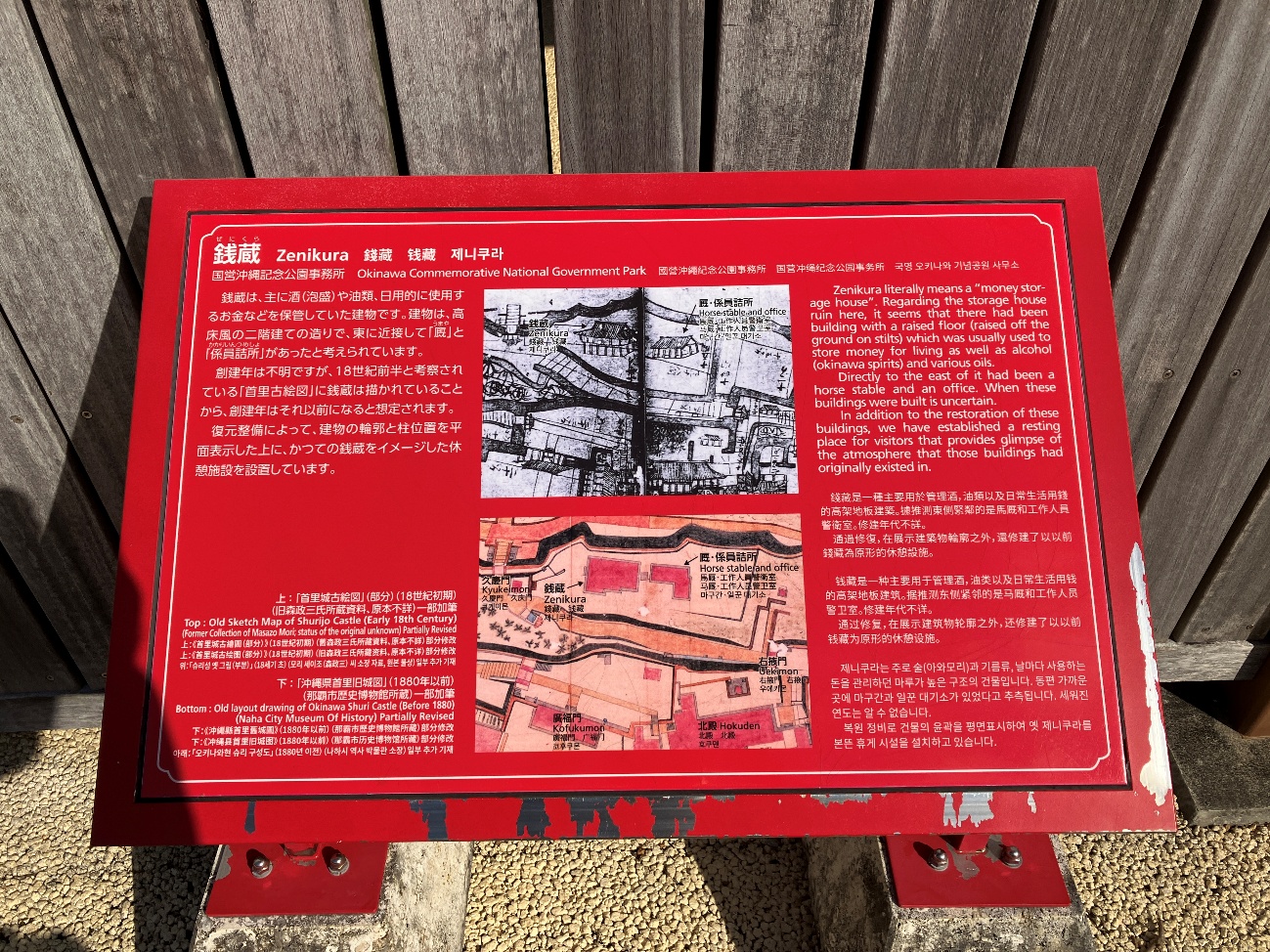 創建年は不明ですが、18世紀前半と考察されている 「首里古絵図」に銭蔵は描かれていることから、創建年はそれ以前になると想定されます。