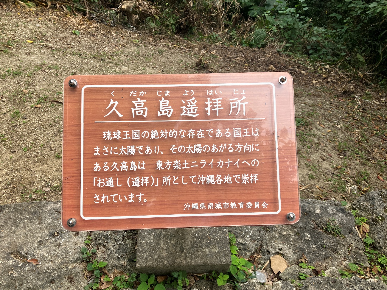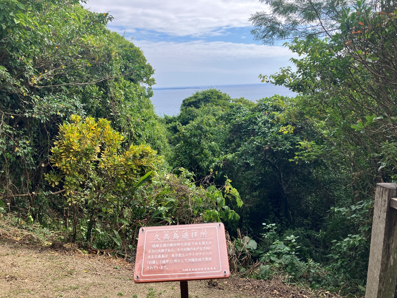 琉球王国の絶対的な存在である国王はまさに太陽であり、その太陽のあがる方向にある久高島は東方楽土ニライカナイへの「お通し (遥拝)」 所として沖縄各地で崇拝されています。