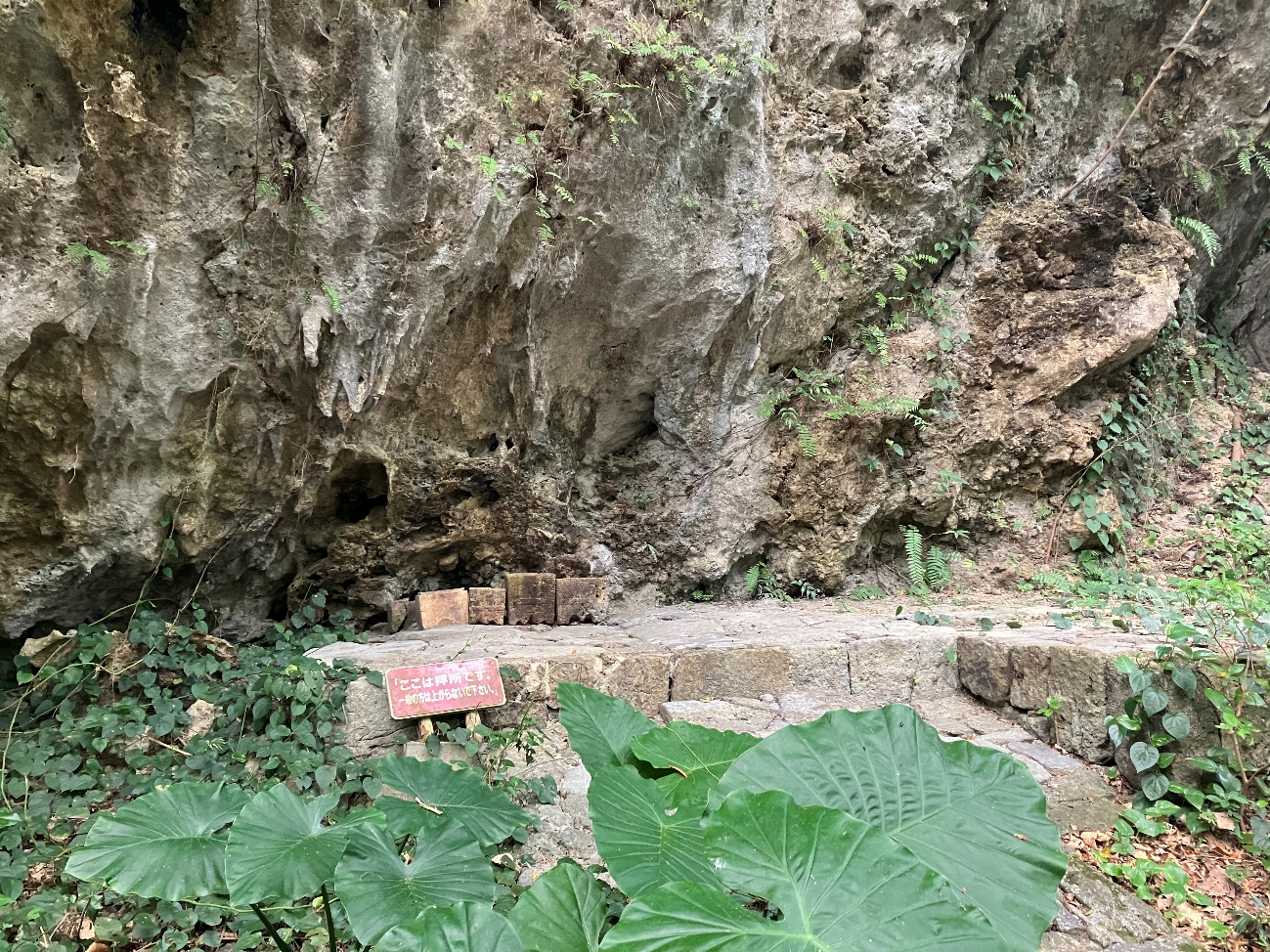 右側の岩の上がチョウノハナで、 それぞれが拝所となっています。