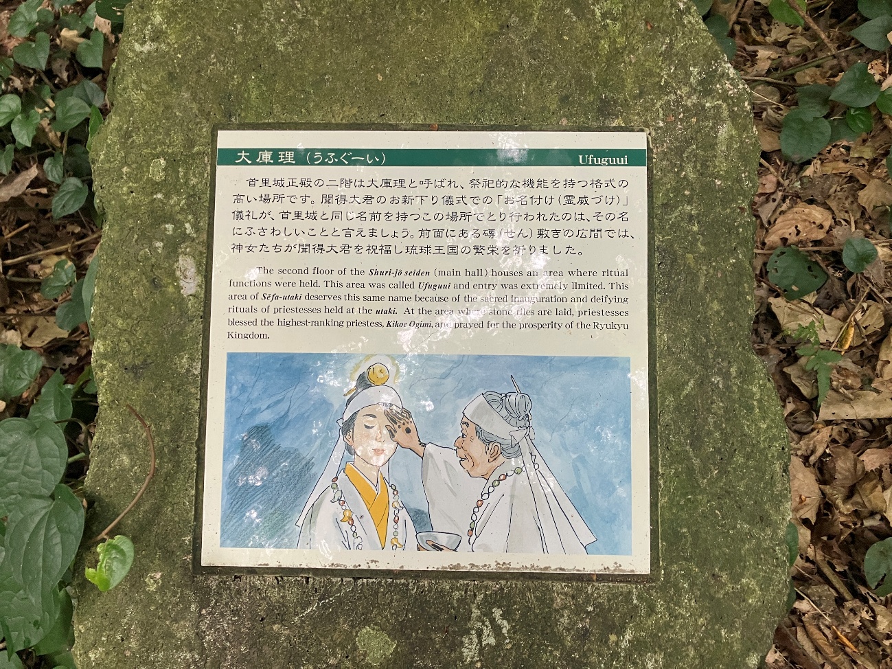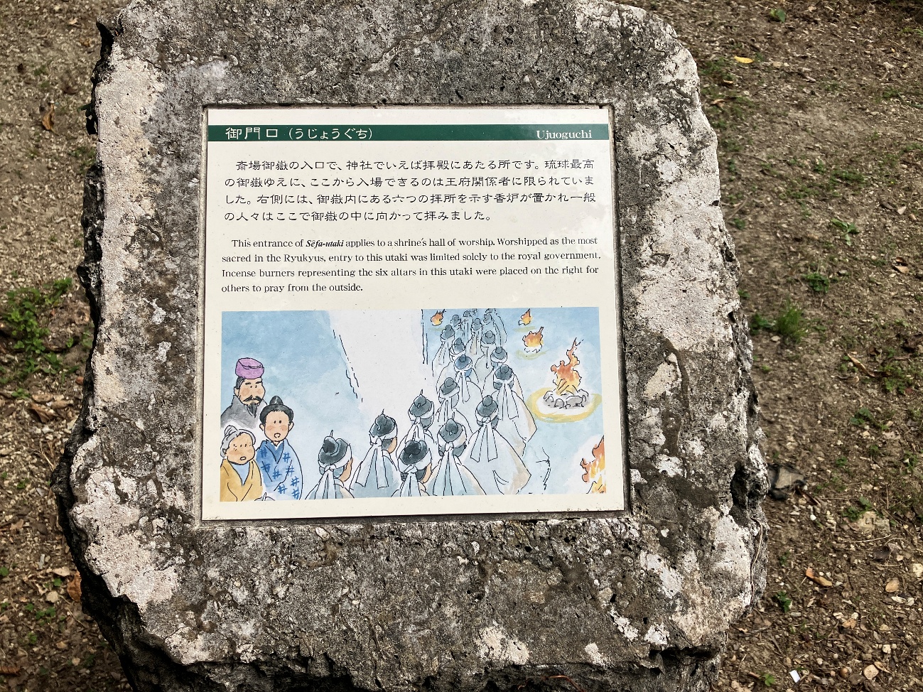 琉球最高神女である聞得大君(きこえおおきみ)の、就任儀礼 「お新下り」の御名付けがこの地で行われたということは、王権を信仰面・精神面から支えていた証でもありましょう。