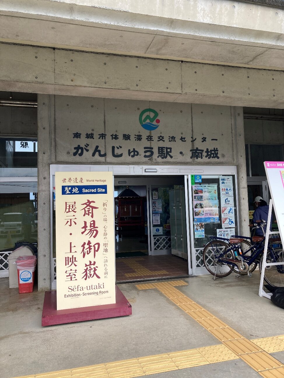 観光客は近くの物産展に停めて、ここで入場券を購入してから斎場御嶽に徒歩で向かいます。
