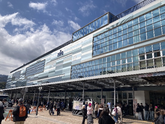 お迎え場所 熱海駅改札を出て正面の足湯「家康の湯」前
