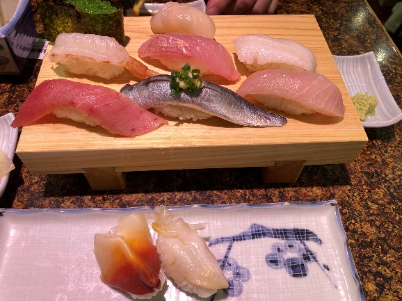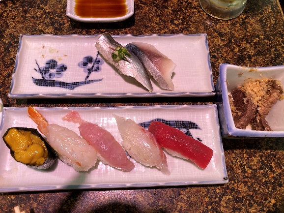空いていたお寿司屋さんに滑り込むと 同じように夕飯難民の人たちでいっぱいに。