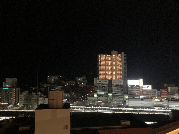 屋上からの夜景は 熱海の駅前を見下ろしてきれい。