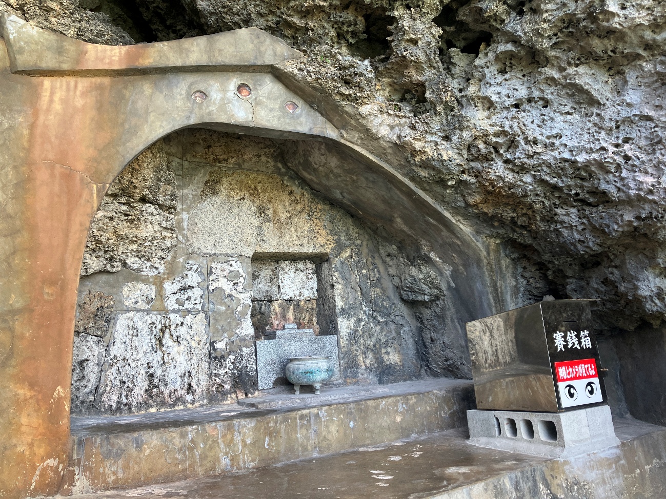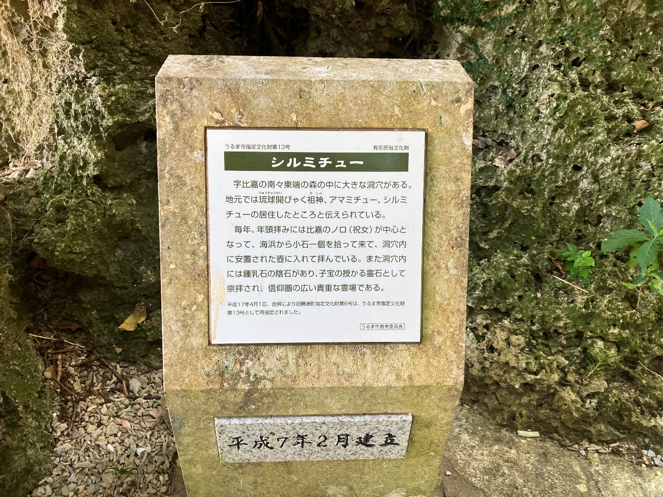 アマミチュー、 シルミチュー二柱の神がこの洞窟に住み、子供を授かったという伝説があります。