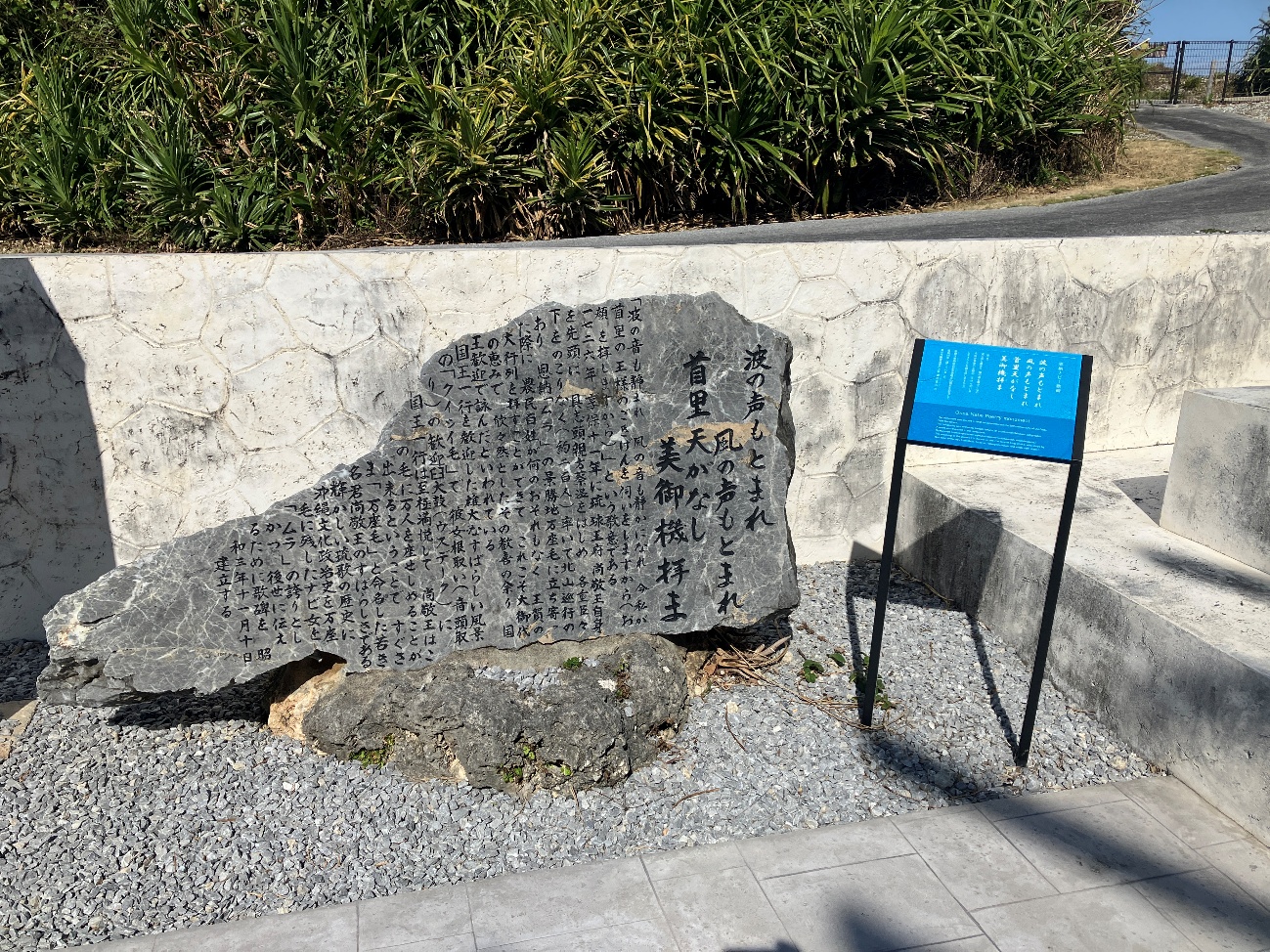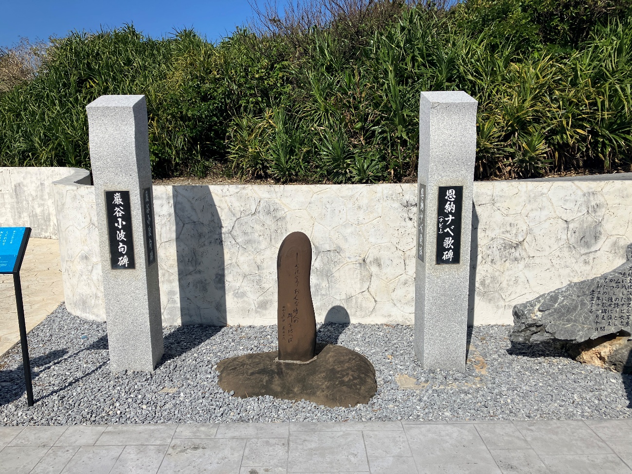 隣には、恩納ナビーの歌に感動した童話作家「巌谷小波(いわやさざなみ)」の句碑が建っています。