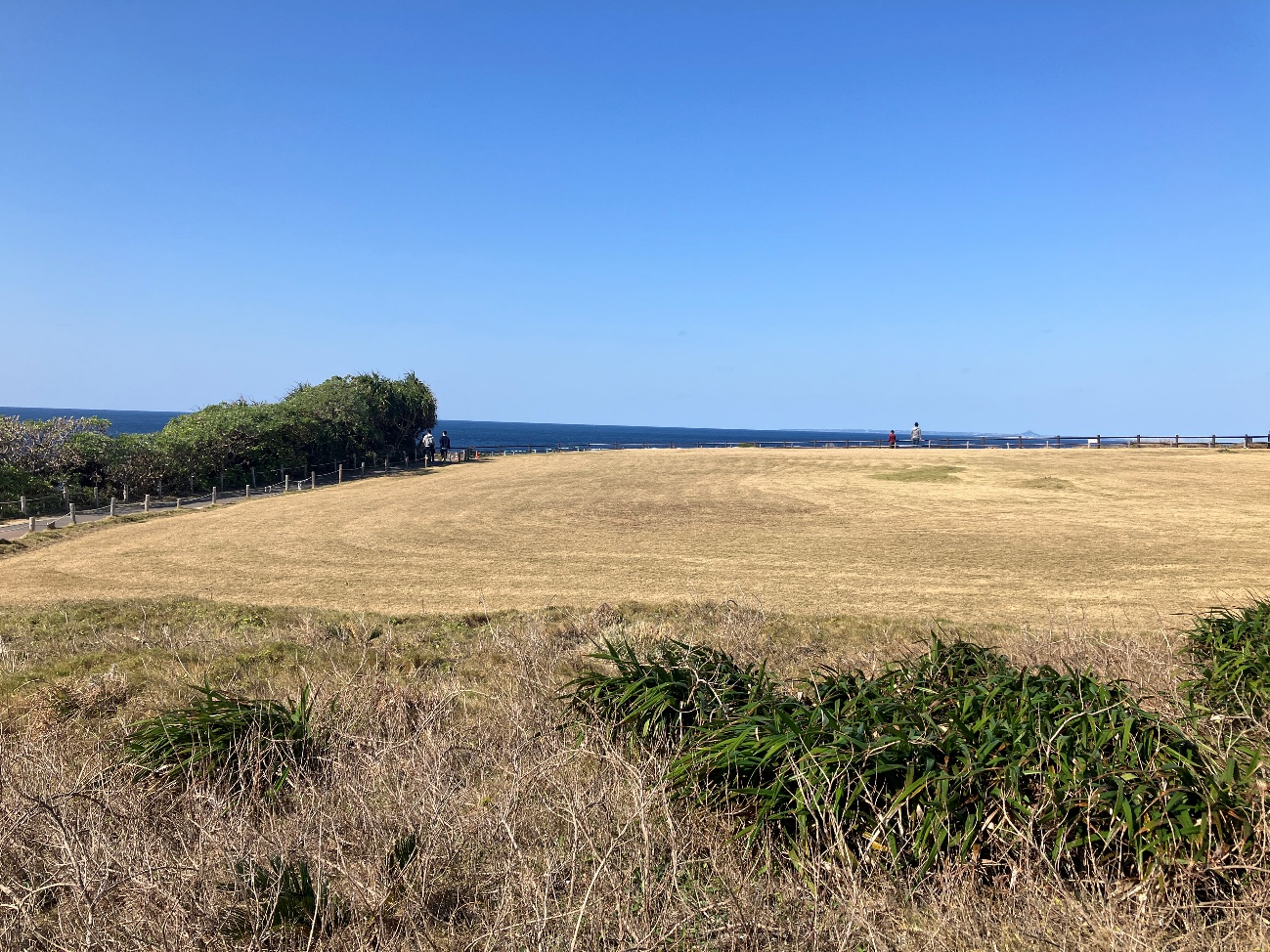 海側は高さ約20mの崖となっており、崖の上の平坦地はコウライシバやタイワンカモノハシが茂った広場となっています。