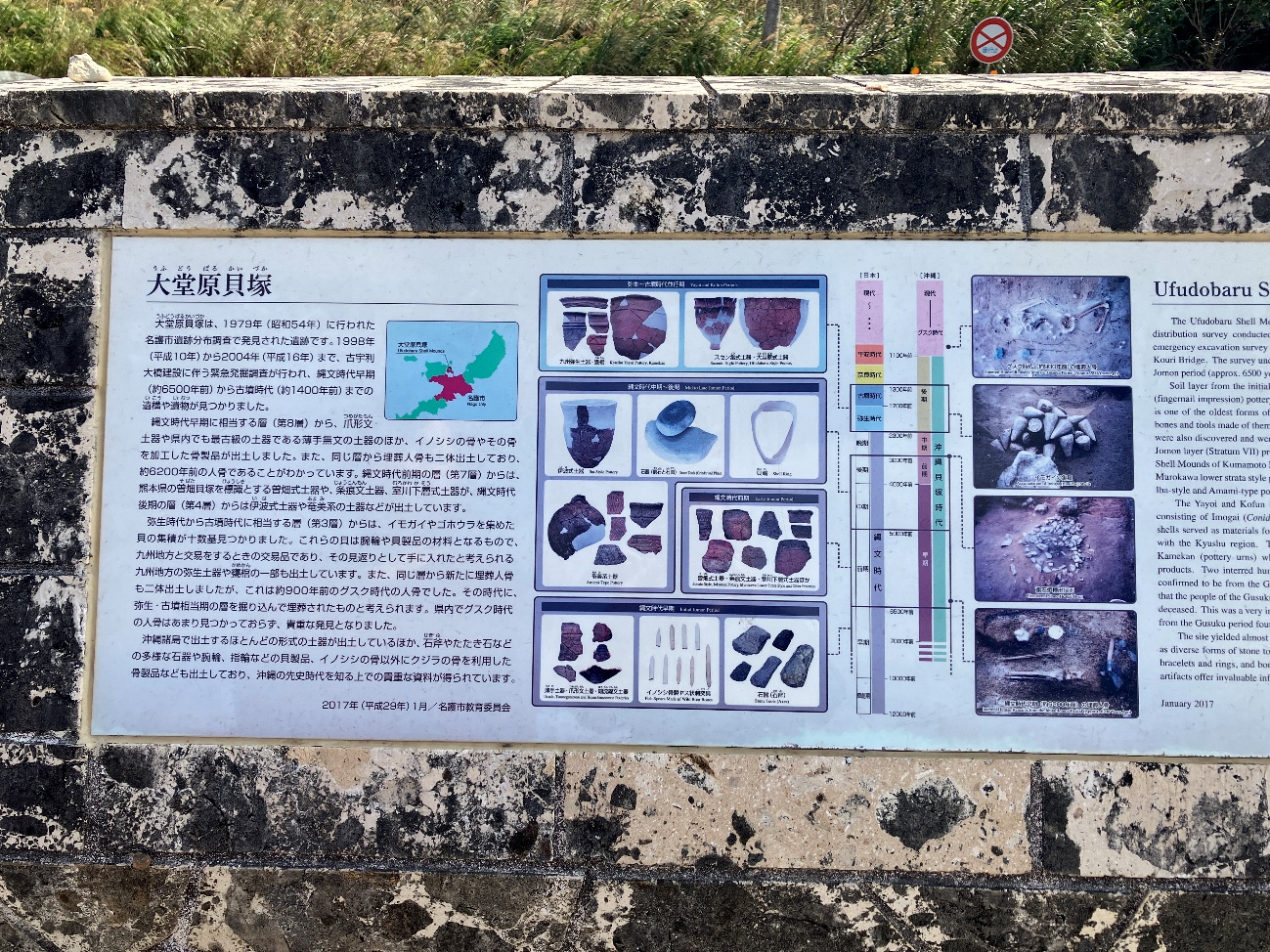 ロードパークには大堂原貝塚(うふどうばるかいづか)の碑がありました。