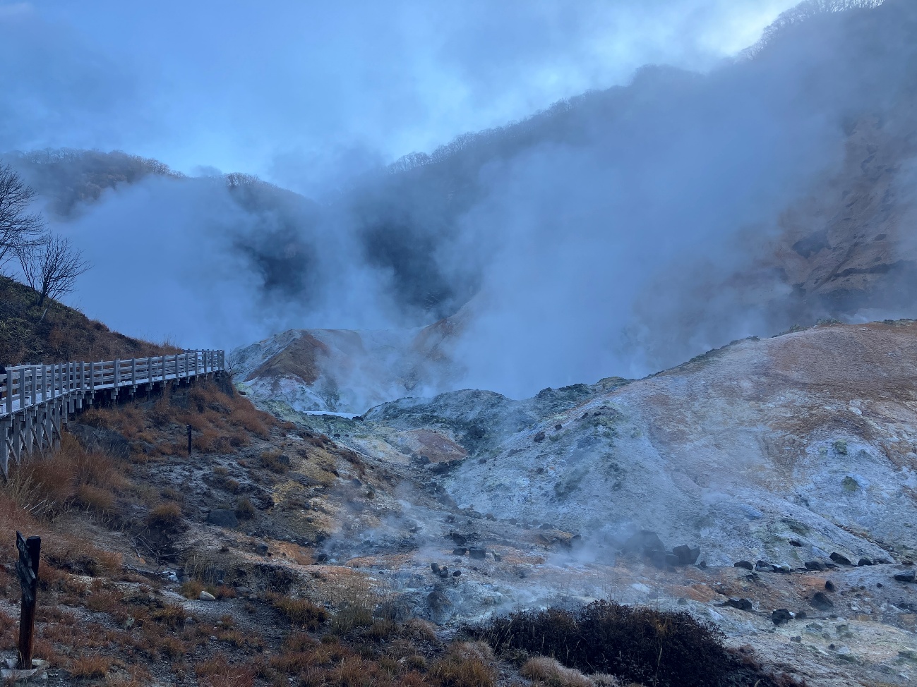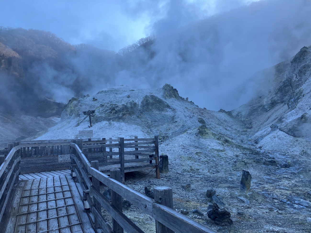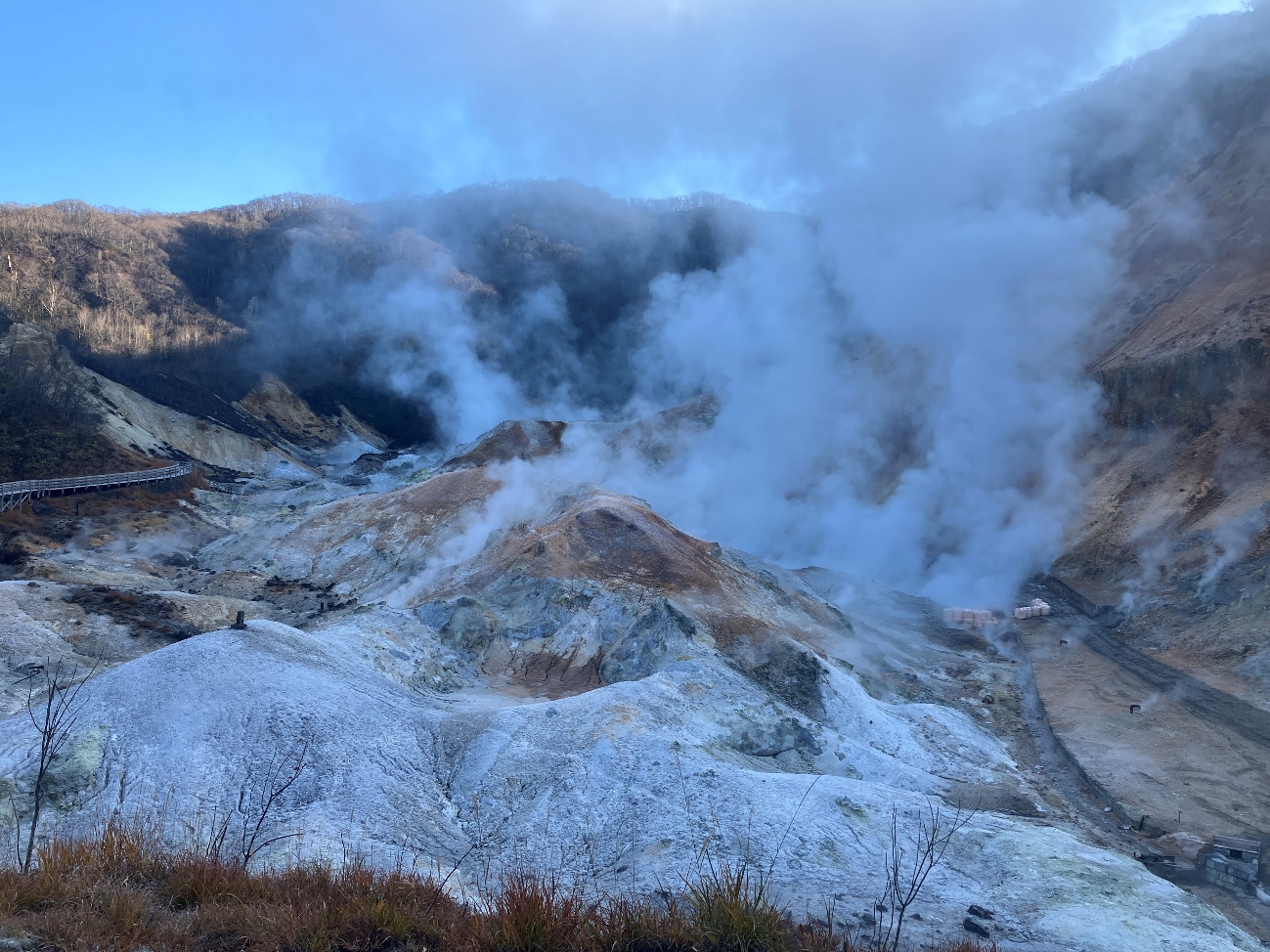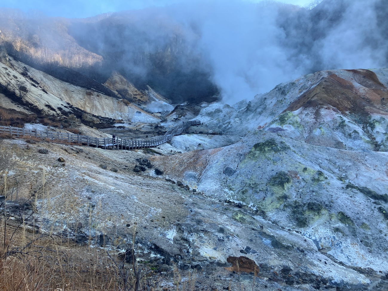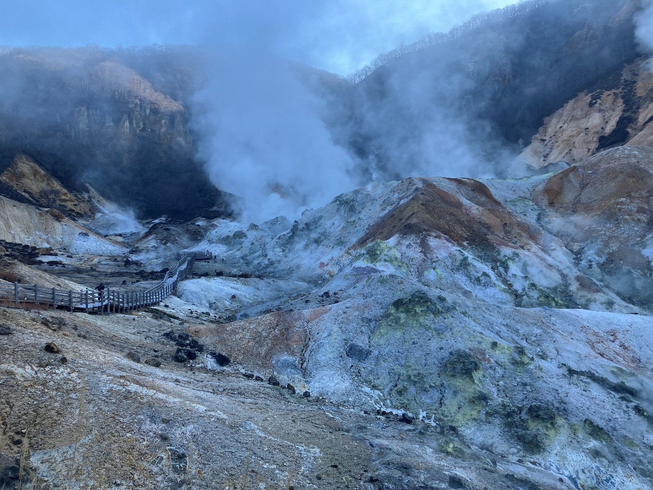 登別温泉へようこそいらっしゃいました。 地獄谷の景観はいかがですか。